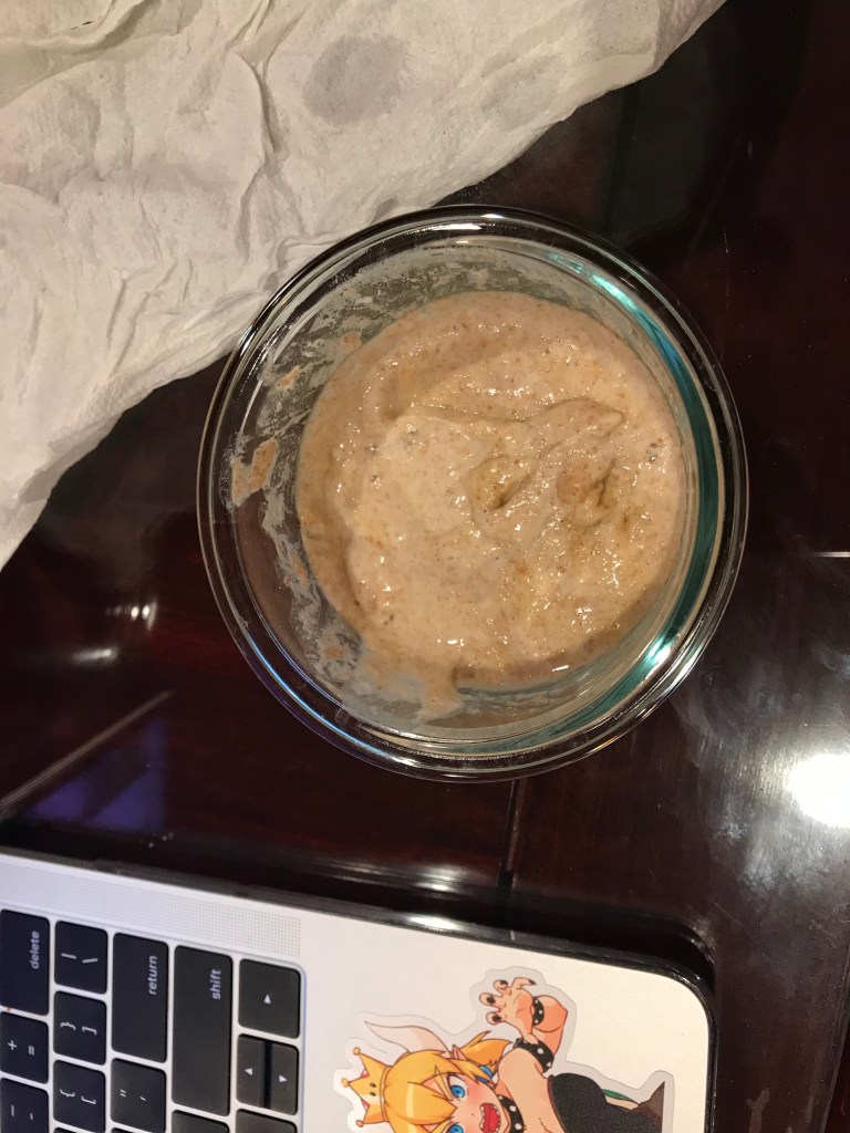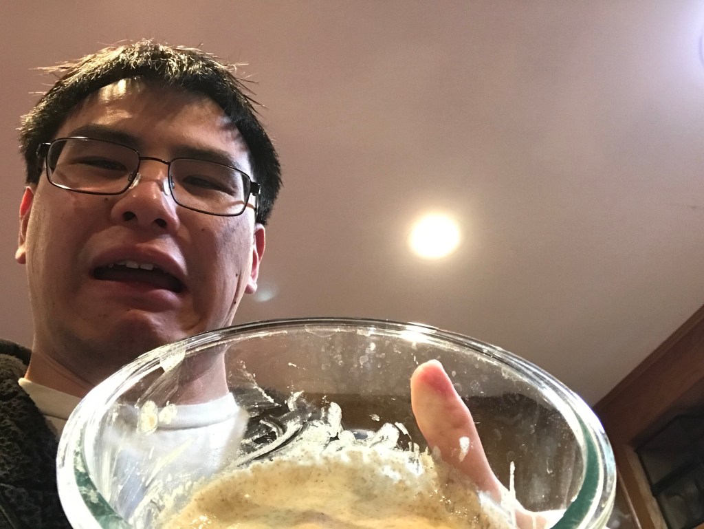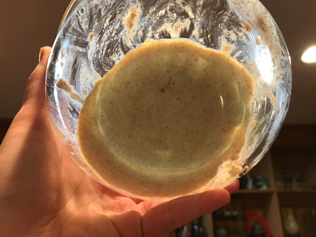 On a good note, the air culture (Aculture) showed some interesting thing. A nice clump of air pocket is observed at the bottom, while the top had a airy feel (see video), squish squish! I first added air it but stirring with the measuring spoon. The smell is still wet dough but lacked the soggy socks scent as past cultures had; there is also another smell I can’t put words to but it smells familiar. After a while, I decide to add ~2TBSP + 3/2 TSP of flour and “x” water until it had pancake consistency. I think I made a mistake here because I was mixing the lab instructions with the steps in the leaven video. I should have let it sit longer instead of adding more food. I will be leaving this open to the air again since I added more food.
