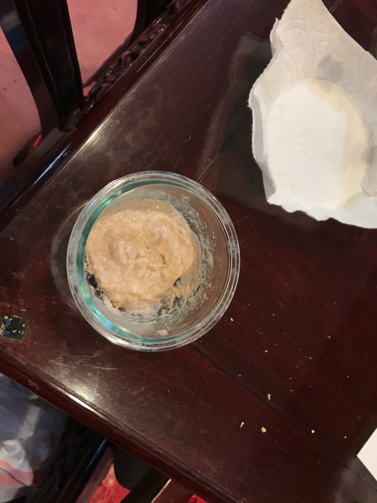 A second air culture was made in a small bowl with 2TBSP + ~4 TBSP of water. This will also be left out in the air.