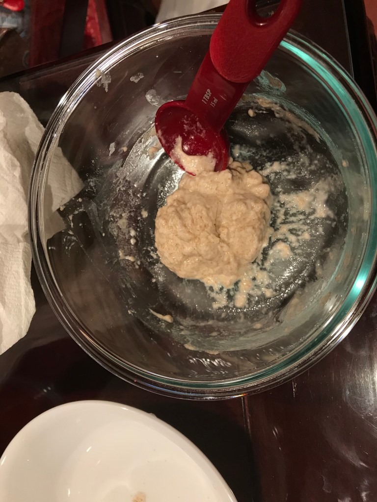 Also the idea with the pancake mix was scrapped due to the leavening used in the powder: chemistry! I found that Pretz sticks have <1% yeast though. Not sure if they are dead or alive… probably dead because bake but… SCIENCE! Made a small batch with a crushed Pretz Stick.