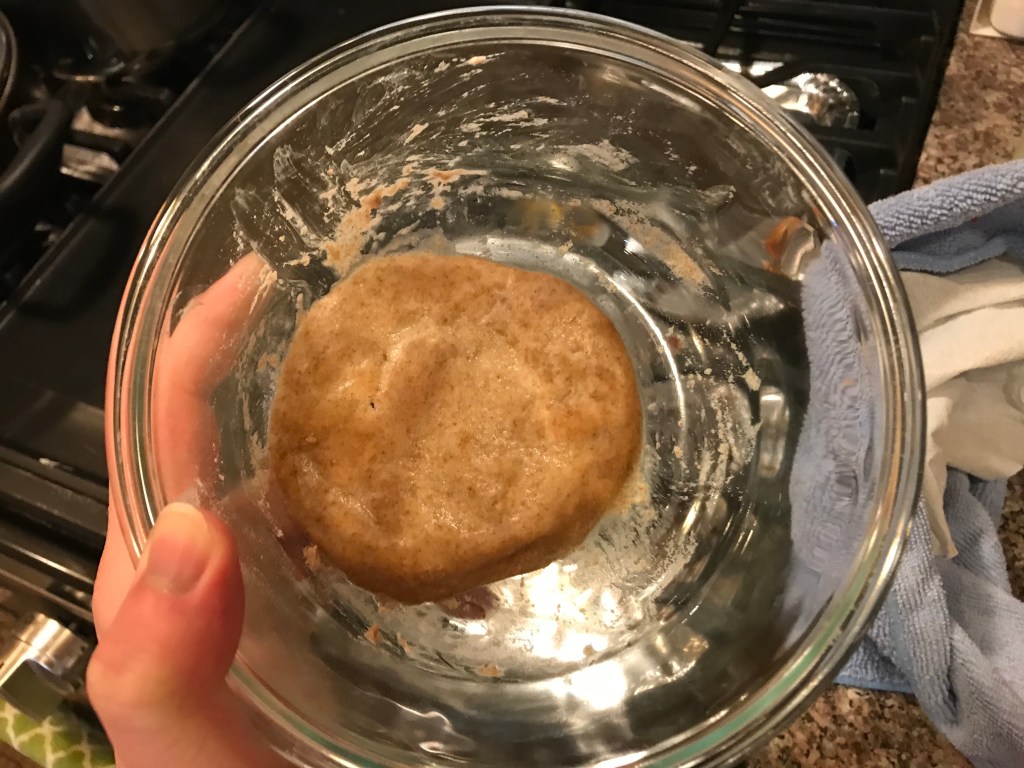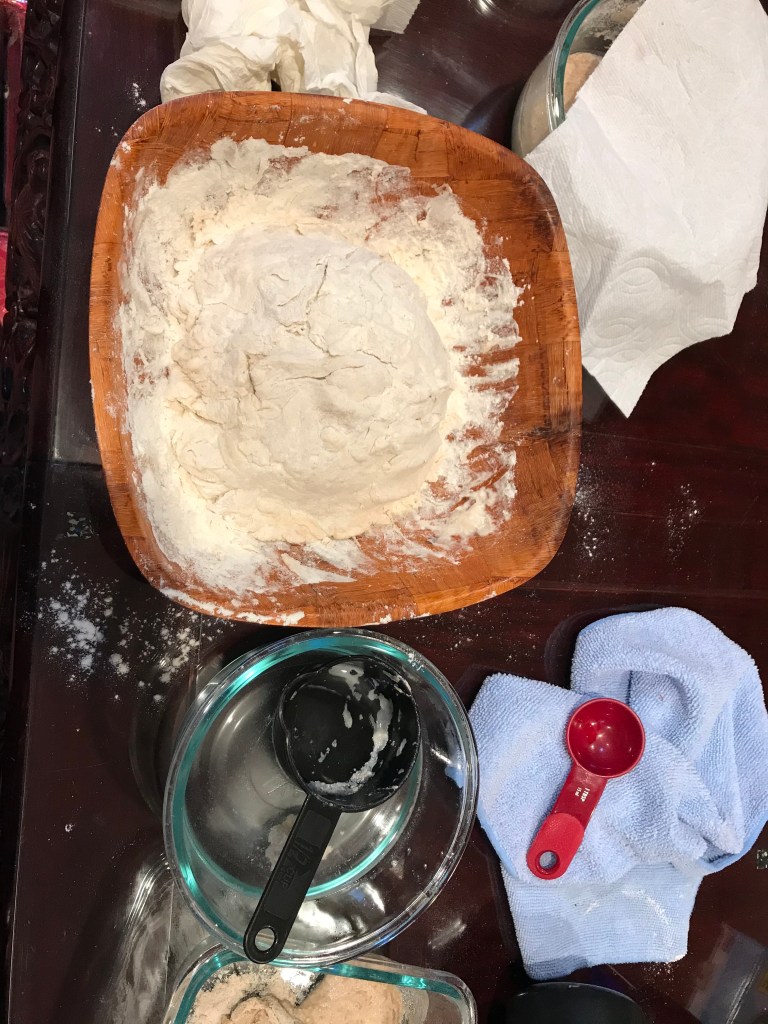 Note: the dough was pretty sticky and cringed to the wooden bowl. I used the wrong bowl. I bet porcelain ones are better.