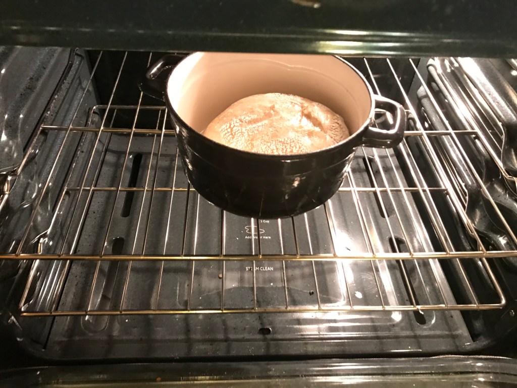 Side note: We bought a dutch oven, what a great advertisement: science project —> buying product! Also I burned myself, I need to remember to lower the oven rack. D: